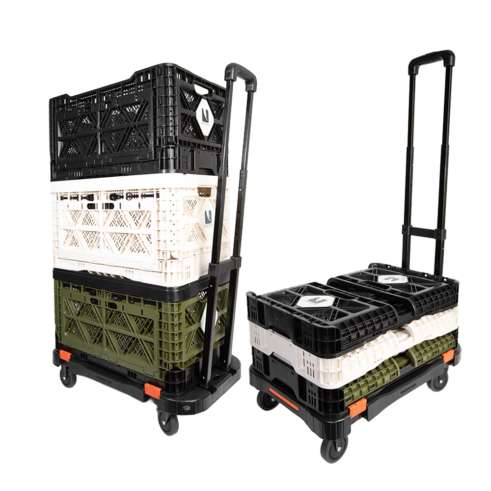 Introducing the Transformer 48 (T-48) Crate, the most rugged and versatile collapsible carrying crate in the world. The T-48 is designed to transport your outdoor gear to the most rugged places on the planet, carrying an incredible 400 lbs and holding the top weight of 1 ton. With the T-48’s side access window, you do not need to re-stack crates to access your gear. Our crate transforms into on-site storage, or add a convenient wooden table top, or insert our custom-fit cooler for added versatility. The T-48 holds 48 liters (almost 13 gallons) of volume, and comes in 3 colors: olive green, black, or ivory. The T-48 also snaps onto a dedicated cart for easy transport of what you need to move. This is the most versatile new product for both your outdoor and indoor needs!